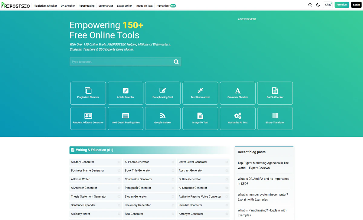 Prepostseo是一个综合性的在线SEO工具与内容创作平台,提供超过150种免费在线工具,主要面向网站管理员、学生、教师、内容创作者和SEO专业人士 。