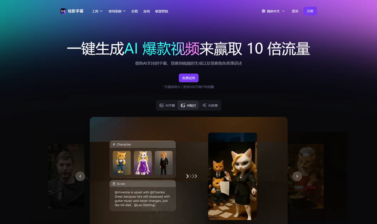 - AI自动字幕生成:利用先进的语音识别技术,自动将视频中的语音转换为文字字幕,支持95种语言,准确率高达98%。